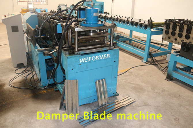 Damper blade Roll forming line is made of uncoiler, roll forming machine, hydraulic shear. The machine adopts PLC full computer control, touch screen operation, the operation can be carried out in accordance with the requirements set under the feed of any size, the production